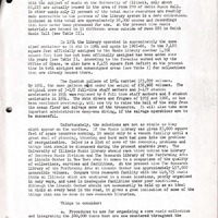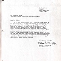 - Music Librarian William McClellan's first annual report on the Music Library at the University of Illinois. McClellan details the Music Library's operations over the past fiscal year, with special attention to the growing need for a new library location, or significant modifications to the facility in Smith Music Hall. The report is preceded by a brief letter from McClellan to Associate Director for Public Service Departments Lucien W. White.