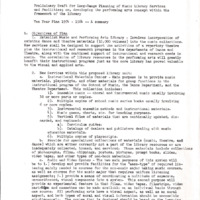 - Preliminary Draft for Long-Range Planning of Music Library Services and Facilities; or, developing the performing arts concept within the framework of the library: Ten Year Plan 1974 - 1984 -- A summary