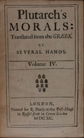 Each vol. contains an additional engraved title page. || V. 1 dedication signed M. Morgan; v. 2 dedication signed: Geo. Tullie; v. 3 dedication signed: Charles Barcroft; v. 4 dedication signed: Robert Midgley; v. 5 dedication signed: Sam. White. || V. 2 has title: "The Second Volume of Plutarch's Morals" and imprint: "Printed for John Gellibrand, at the Golden Ball in St. Paul's Church-Yard and are to be sold by Timothy Goodwin, at the Maiden-Head against St. Dunstan's Church in Fleetstreet. 1684." || V. 3-5 has imprint: "Printed for R. Bently at the Post-House in Russel-street in Covent Garden MDCXC." || Translators names listed after the preface in v. 1; after the dedicatory in all other vols.