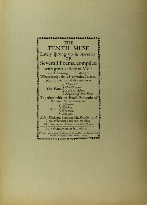 In seventeenth century America, Anne Bradstreet (1612-1672) was the most eminent of the poets writing in the colonies. Her first collection took on the title directly: The Tenth Muse, Lately Sprung up in America. Modern literary historians often identify her poetry as the starting point for American literature. Sor Juana Inés de la Cruz (1651-1695) was a contemporary of Bradstreet’s in Mexico, whose career reflected a shared experience as a colonial woman writer, but whose life was otherwise quite different. Of elite mestiza heritage, Sor Juana was highly educated and literate in Spanish, Nahuatl (the indigenous language of Central Mexico), and Latin. A collection of her poetry, Poemas de la unica poetisa americana, musa dezima, soror Juana Ines de la Cruz (1690), identified her as a “Tenth Muse”, and in her other works she was also called “del fenix de México” and “The Phoenix of Mexico.” Numerous poems addressed to her close friend the Vicereine, Maria Luisa Manrique de Lara y Gonzaga (1649-1721) take on a distinctly romantic character as well as erotic overtones.